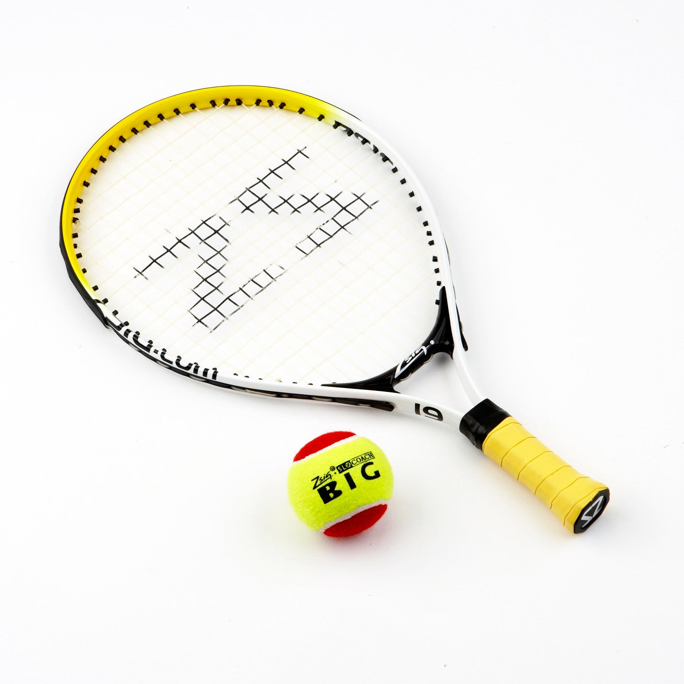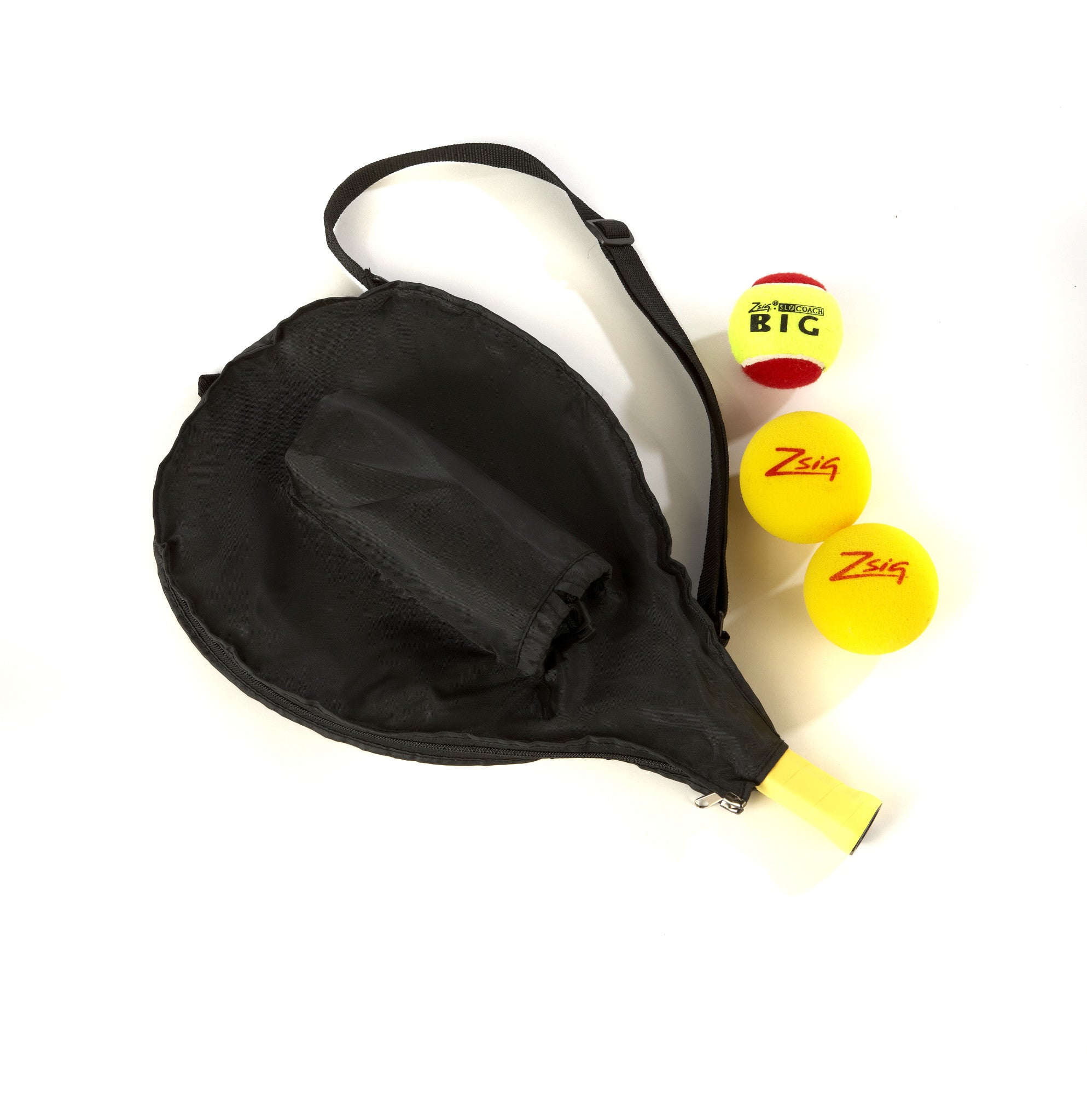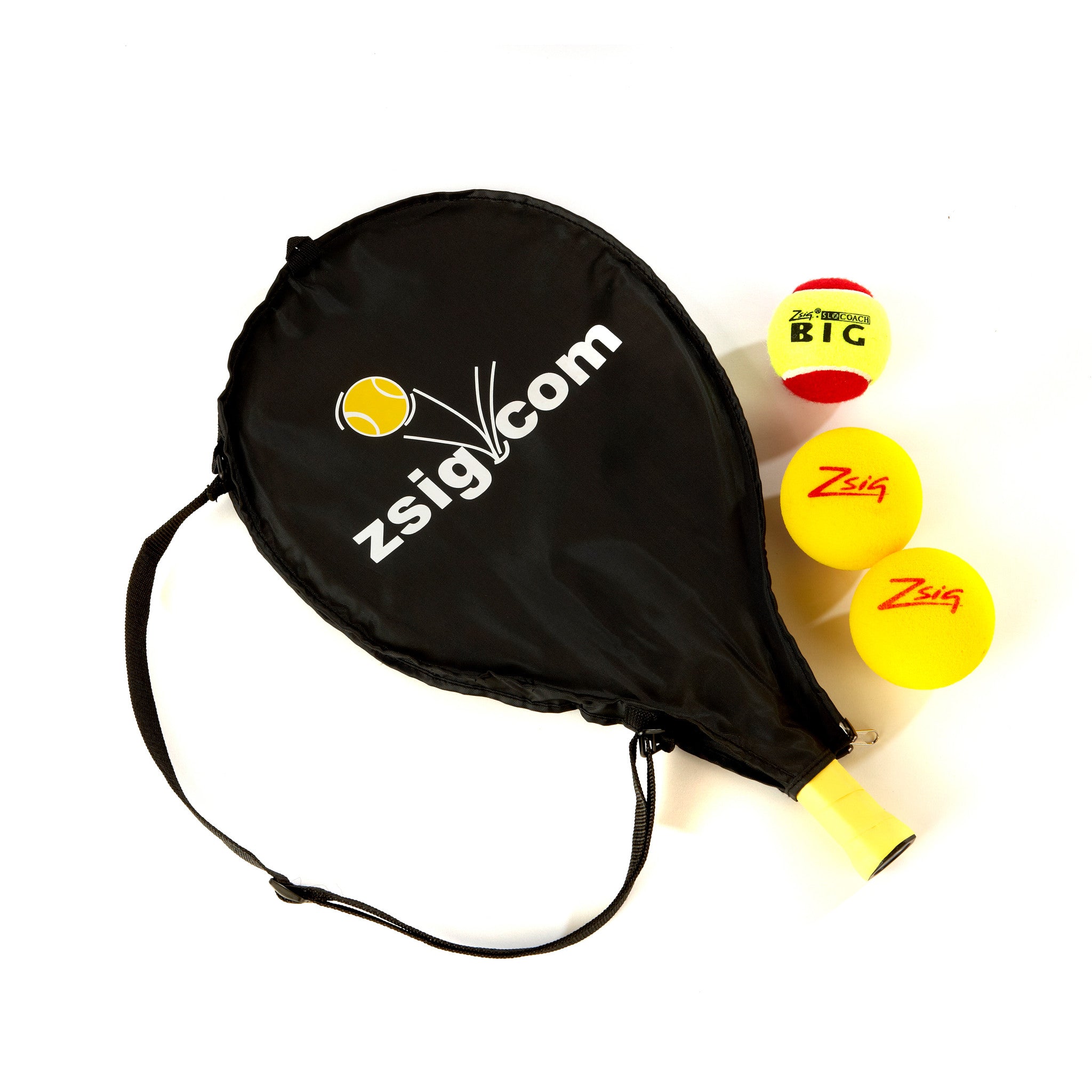 Balls are two Advance sponge Mini Tennis Balls and one SLOcoach Big Red Mini Tennis Ball.
