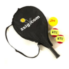 Here you have our 21 inch Mini Tennis Racket in a set with a black headcover. The headcover has a drawstring compartment which handily holds three tennis balls. No more looking for a extra bag to carry them in!