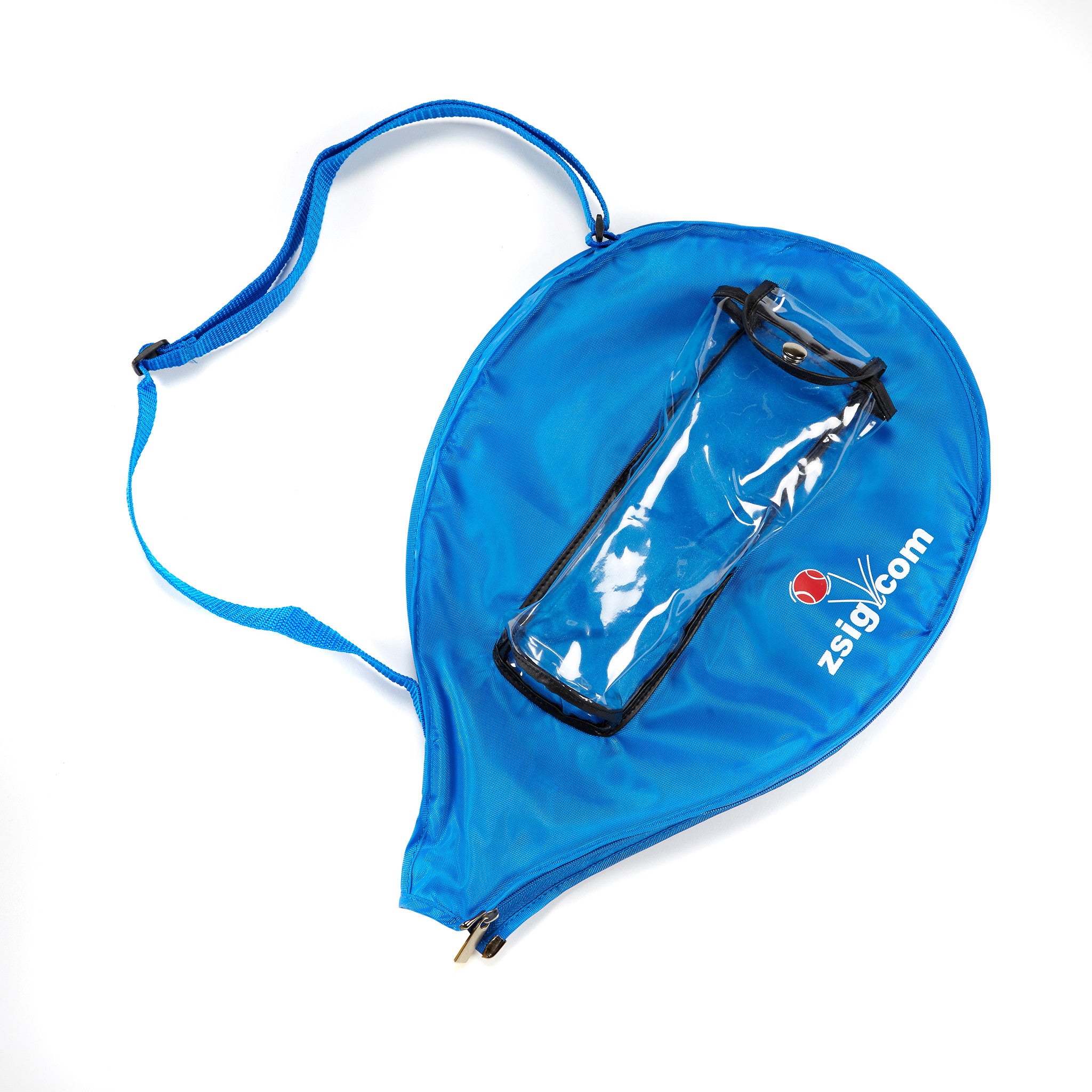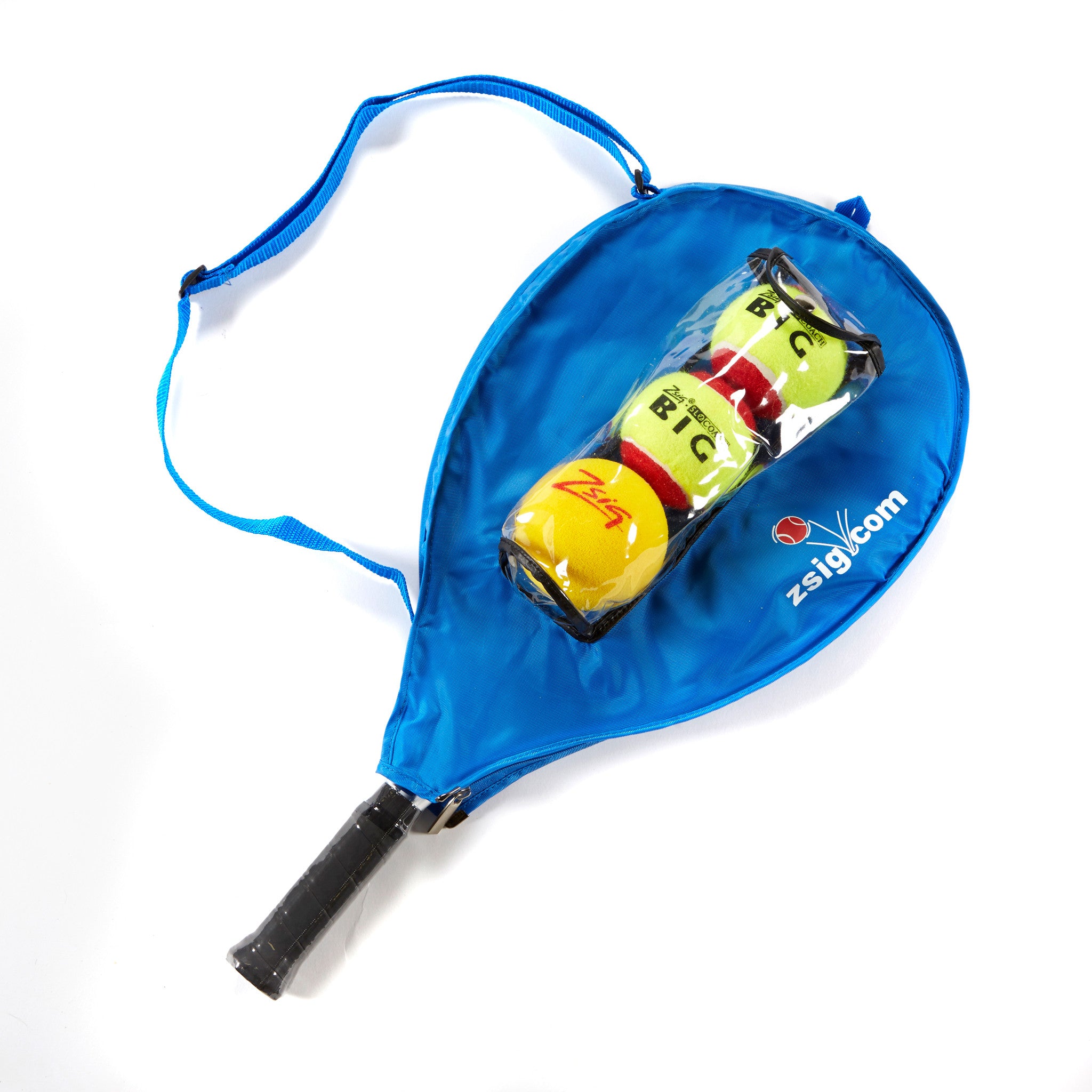 Mini Tennis Racket head-cover with drawstring ball holder (holds three tennis balls).