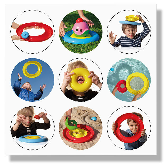 But Nello can also be many things. A sand or water toy: those three curved rings can be a floating island in the bath, a mould for sand games, a moat. And children use them creatively in endless ways in imaginative play.