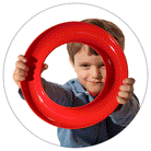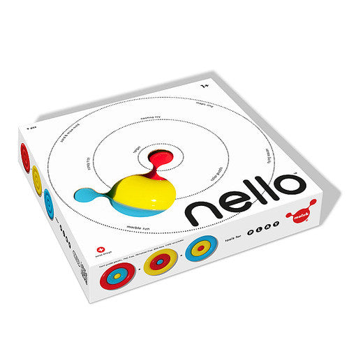 A Nello set is a very high-quality (this is no floppy, light plastic affair) brightly coloured puzzle or nesting toy of three smooth, curved coloured rings. Educational uses include teaching very small children colours, and coordination.