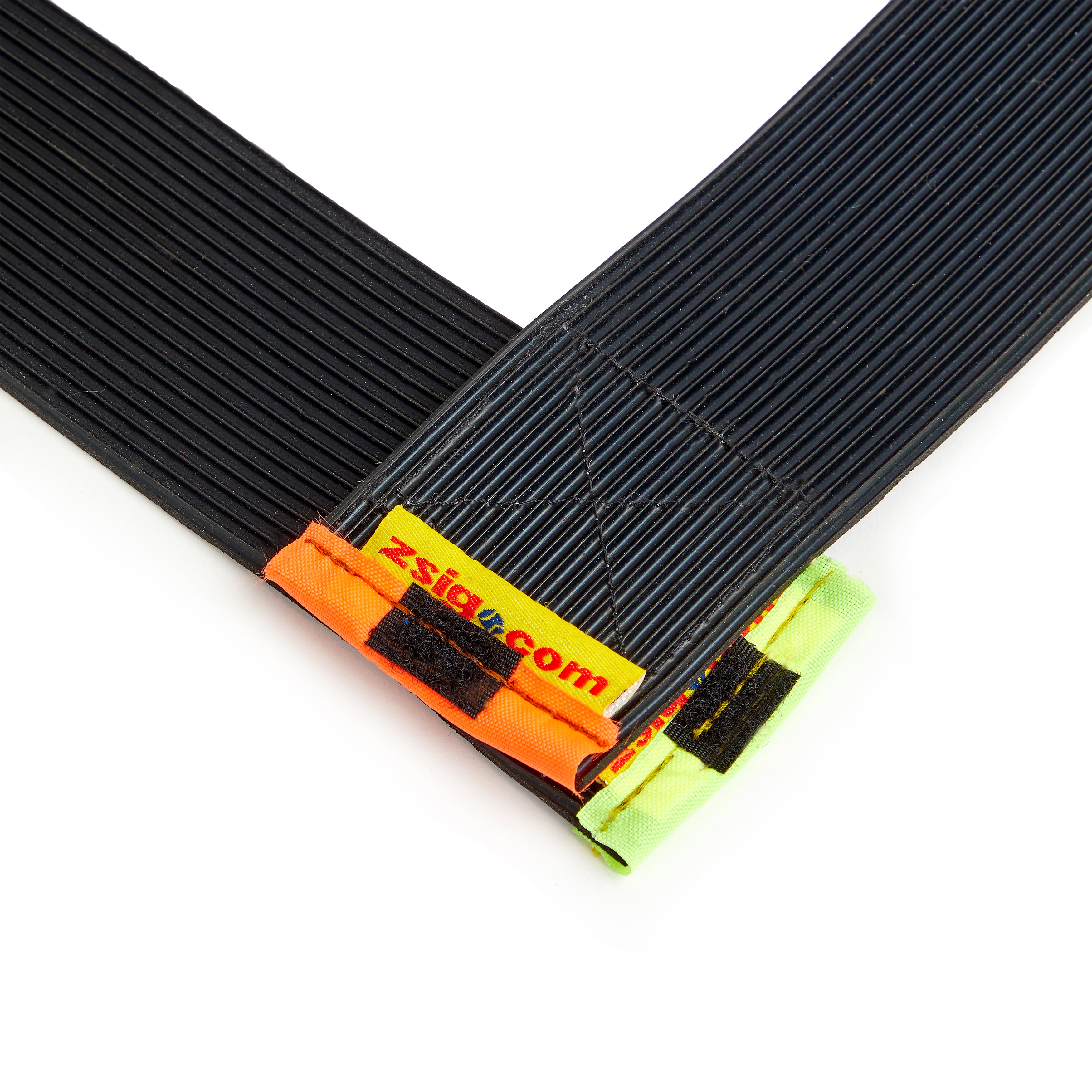 These safety lines are are made from extremely durable 100% natural rubber, with a ribbed surface on their upper side for sure footing, and a textured underside which grips the court surface. They are totally waterproof, weather resistant and easy to clean.