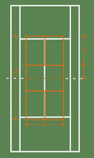 4 x 20 ft lines, colour-coded orange (2 x baselines, and 2 x service lines)