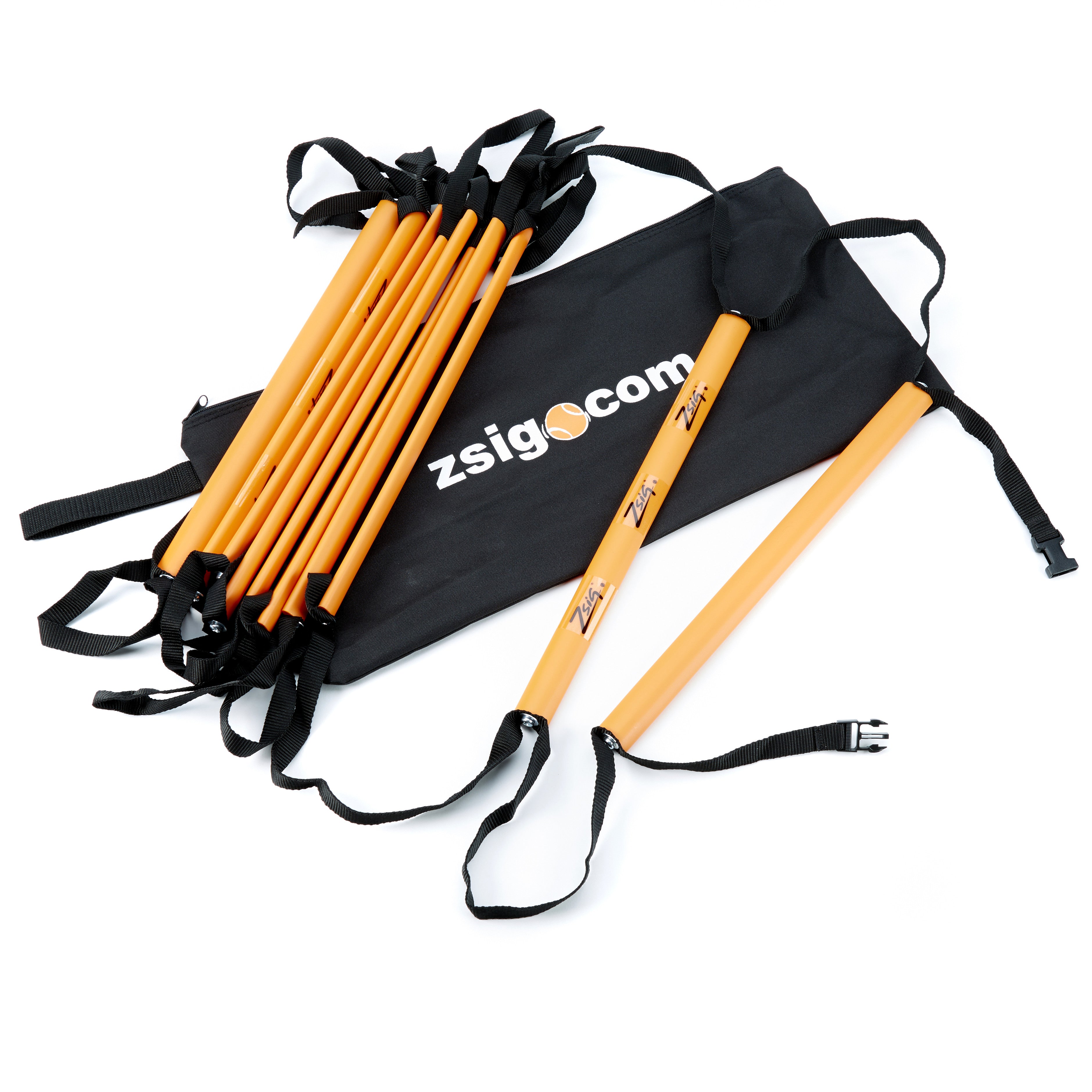 A new Agility Ladder in bright orange, with flat-base solid plastic rungs - which means that the base of the rungs sits flat on the ground.