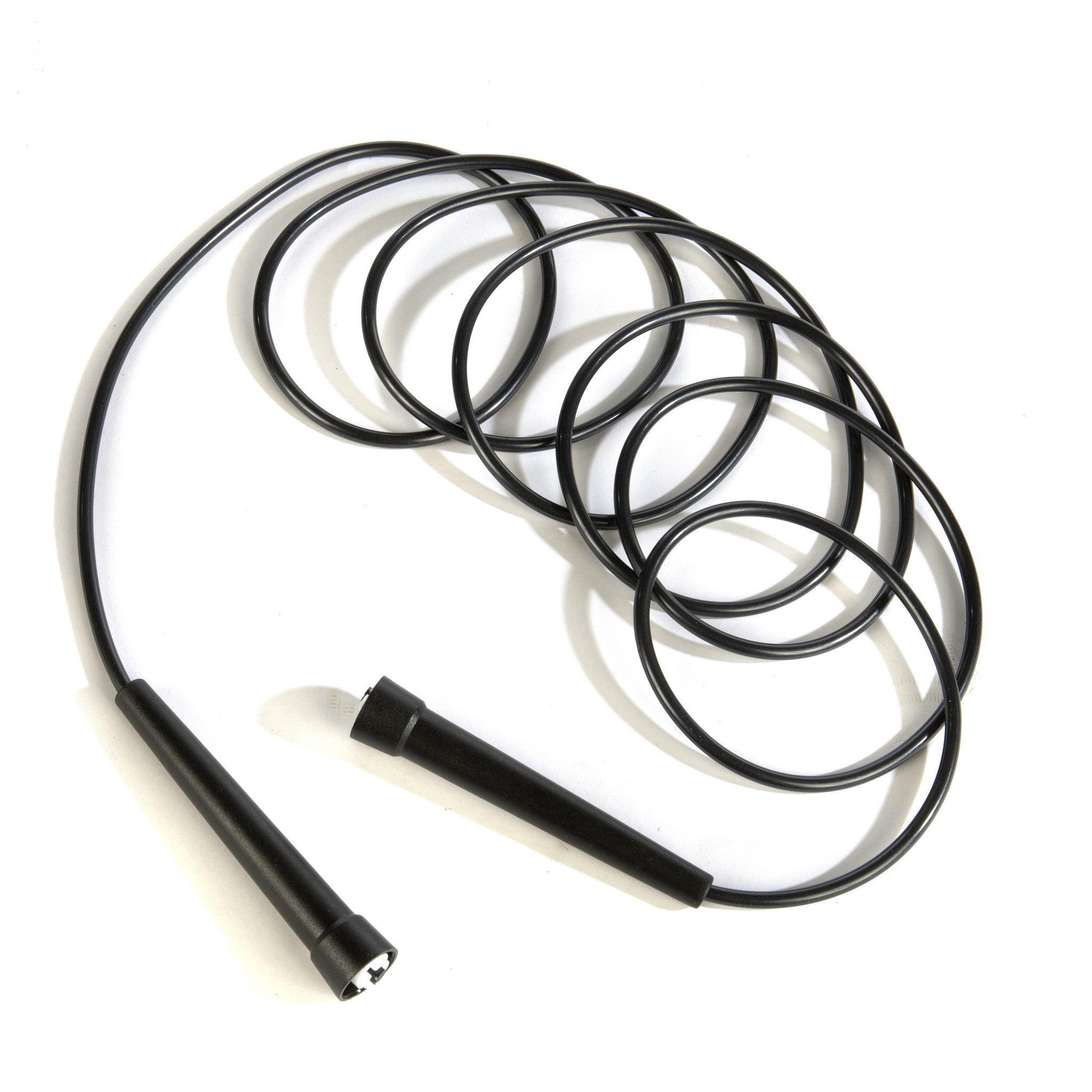 9ft vinyl waterproof speed skipping rope with easy-grip handles. Ideal for warm-up, fitness training and free spinning. Plastic end stops for less friction, more speed.