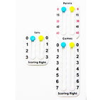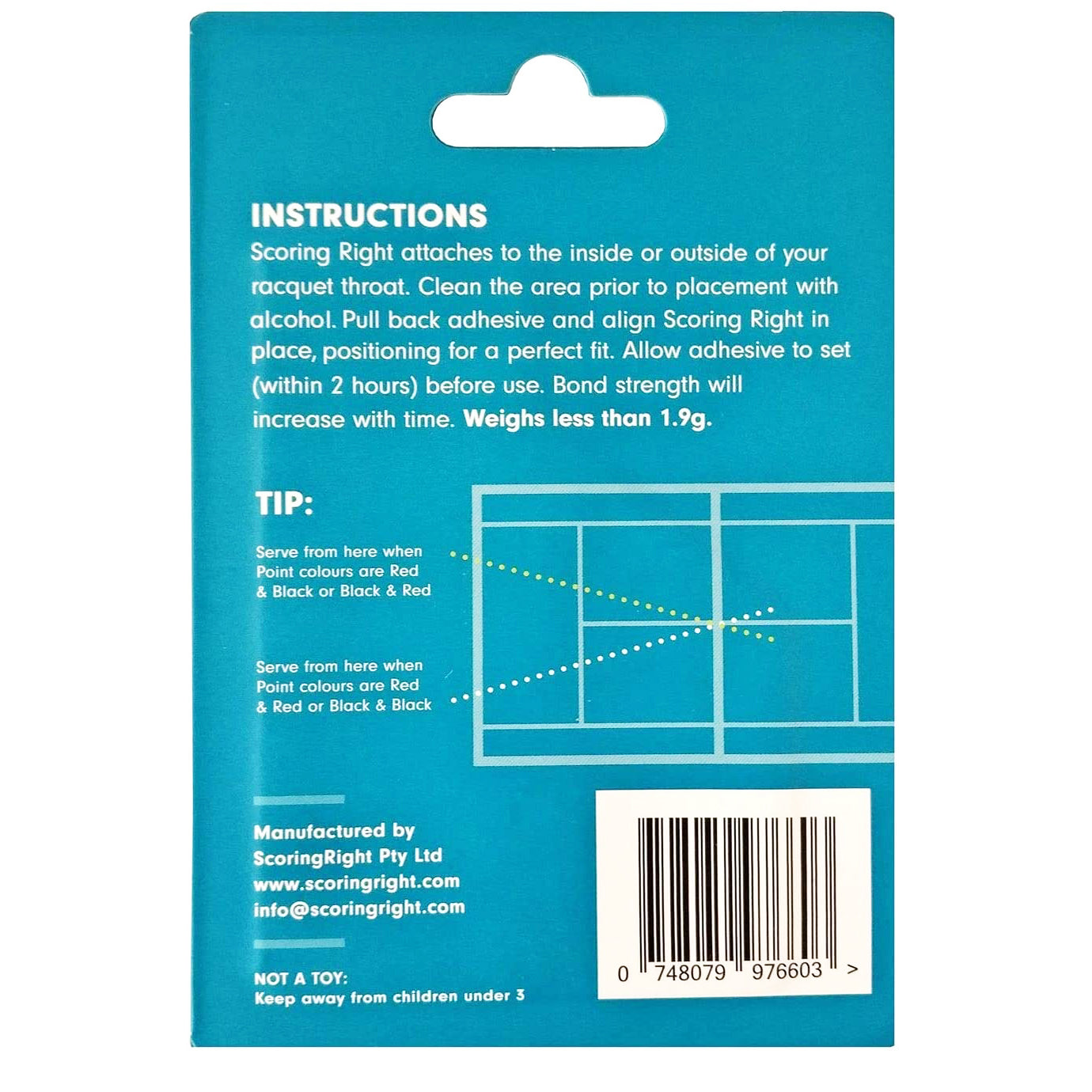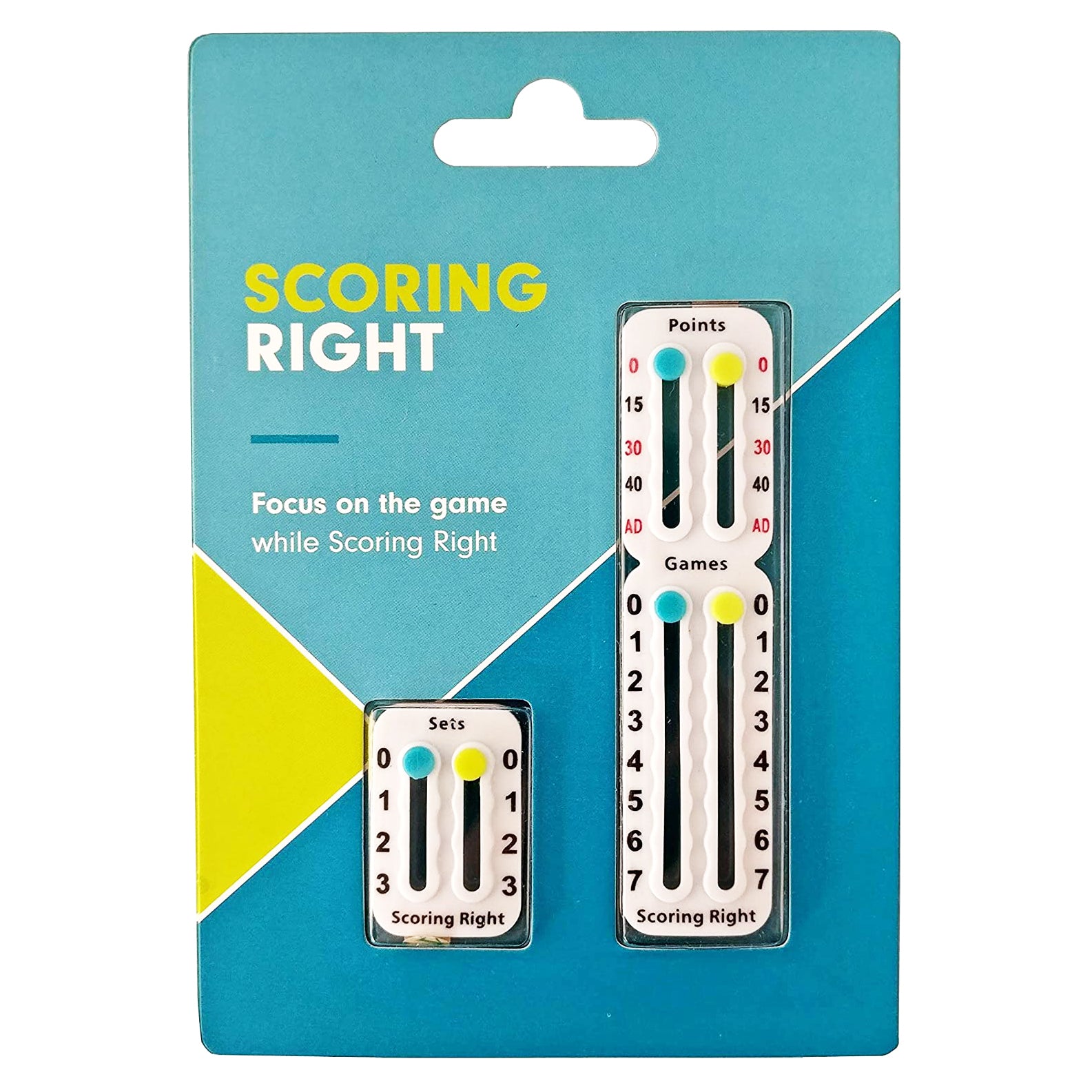 Scoring Right is a neat, light tennis scoring system which attaches directly to the racket throat, inside or out, so you easily keep score of points, games and sets.