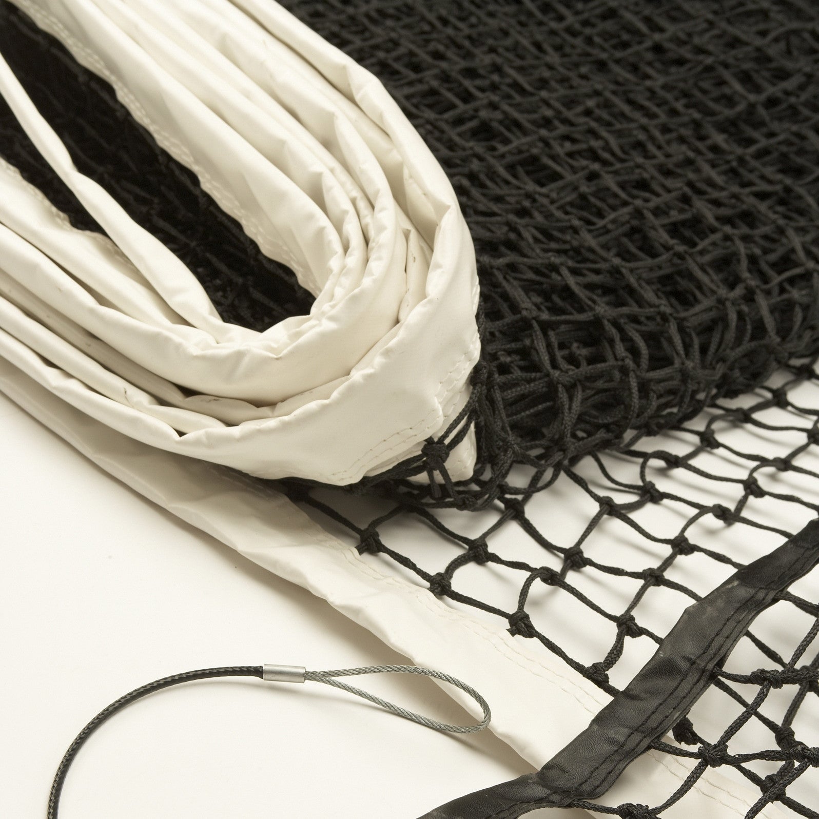 Championship nets are top of the range tennis nets from Edwards, with a proven track record of longevity. Manufactured from black knotted polyethylene netting with a 3.5mm braided twine and 45mm mesh. Black PVC banding is machined to the sides and base of the net for extra durability. Headband which is hard wearing and easy to clean.
