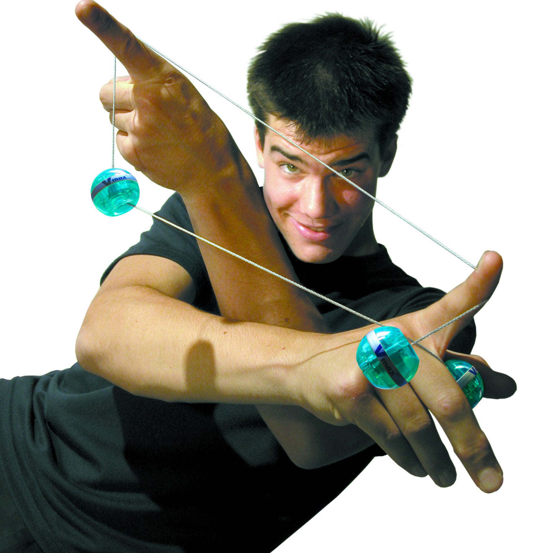 With Astrojax V-MAX comes a trick sheet and docking station. Wrap the Astrojax string around it, and keep your V Max close by - wear round your neck or loop over a belt. You need never be parted...