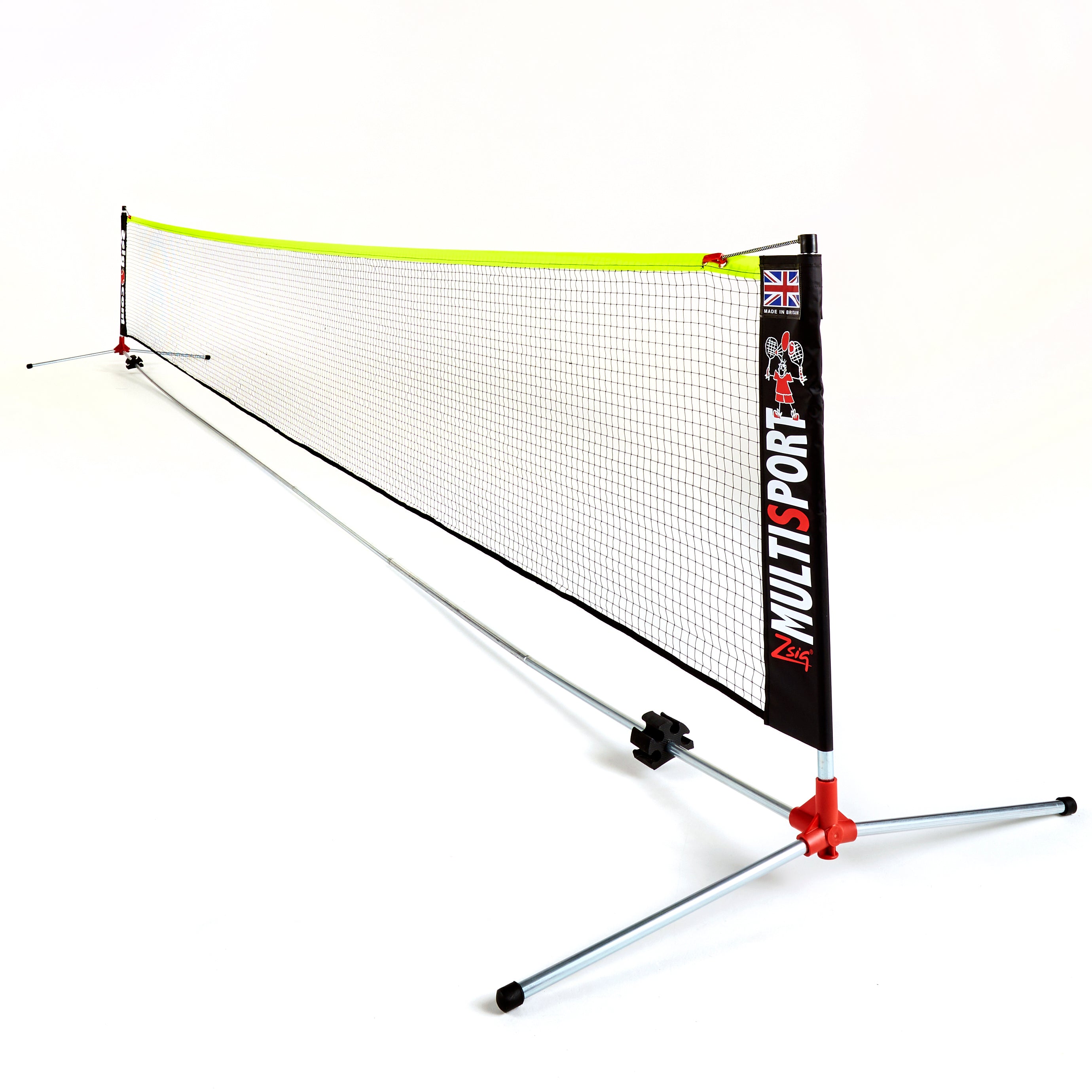 Our full-size Multisport net is 6m in length, and standard Badminton height and size - great too for Volleyball and Footy Tennis. Simply use its twist and lock mechanism to lower the net height to Mini Tennis height. Or any height in between!