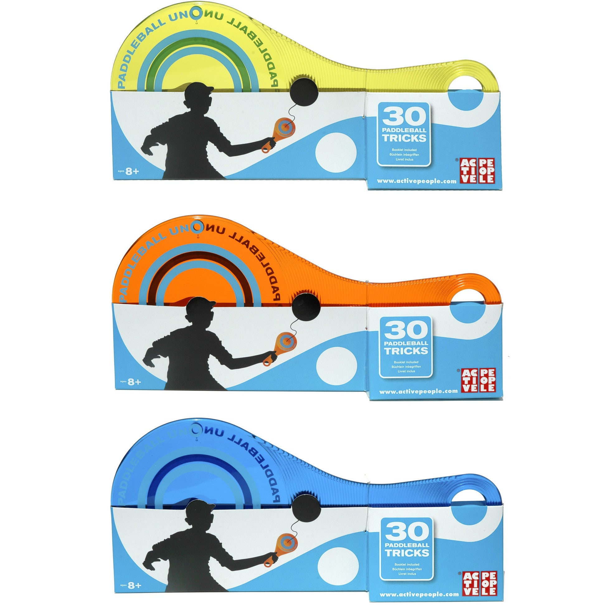 Comes packaged, with paddle, ball, string and 30 tricks booklet.
