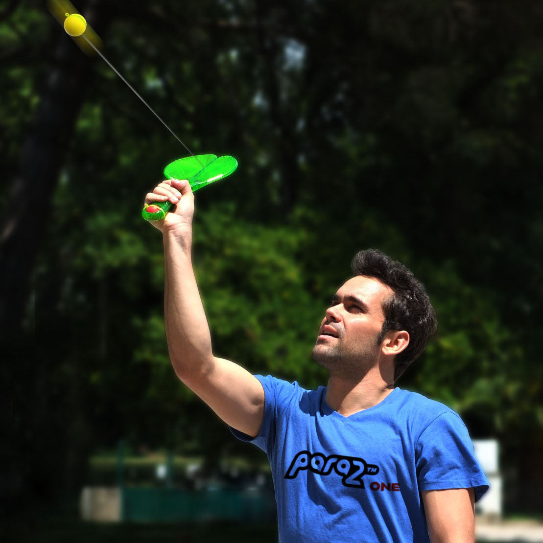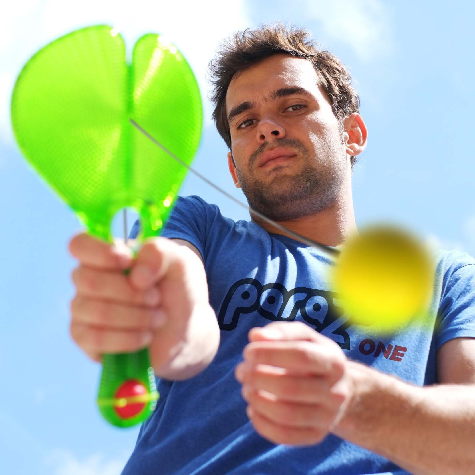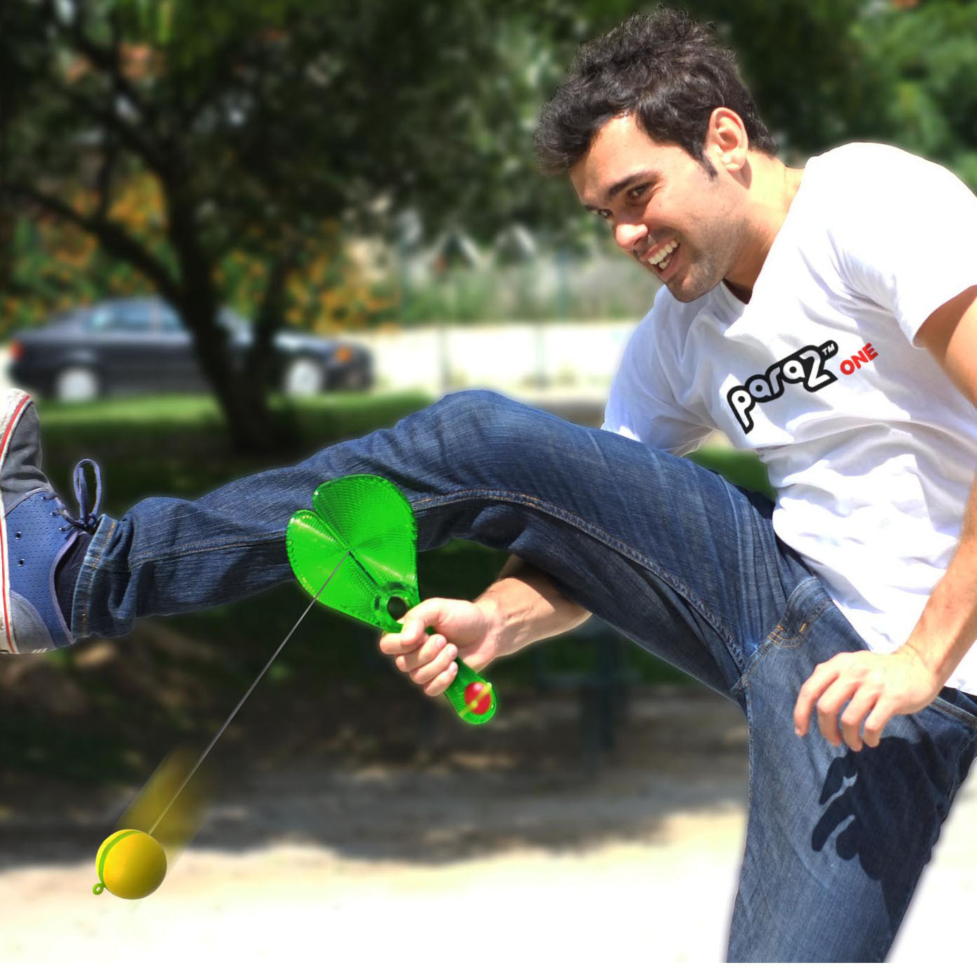 Para 2 One is a radical and unique patent-pending paddleball re-design, allowing you to flip from forehand to backhand fora massively extended range of tricks and play possibilities.